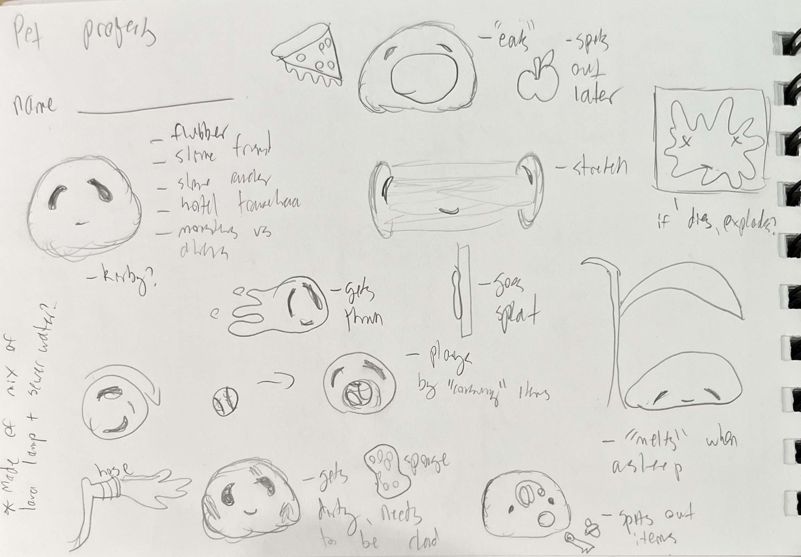 A discarded lava lamp mixed with sewer water, creating Squibble, a glowing, intelligent slime creature fascinated by humans but too toxic to approach them. Lonely but curious, Squibble lived in solitude until a human named Sam fell into the sewers. Initially scared, Sam grew to trust Squibble, who guided them to safety and comforted them with its gentle glow. Grateful, Sam named the creature Squibble and used its collection of found objects to build a device that allowed them to communicate from a safe distance. Though Sam eventually left the sewers, their unique friendship endured, bridging the gap between their worlds.